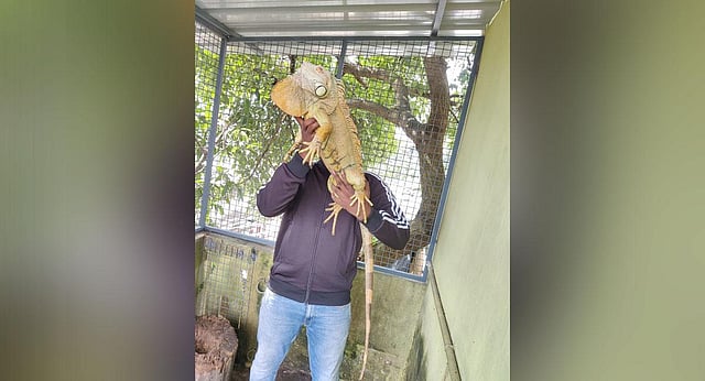Iguanas are reptiles from the lizard family and resemble dragons. They are 30 to 45 centimetres in length and weigh up to 4 kg. Despite their intimidating appearance, they are quite affectionate, especially with those they feel safe with. Iguanas are herbivores, which eat leaves, and in the wild, they eat wild fruits and other plants. A baby iguana costs around Rs 6,000.