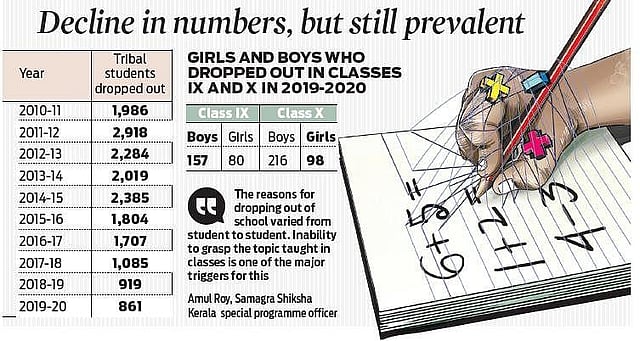 However, SSK has come out with textbooks written in tribal languages to deal with the problem, he said. “Besides, we record videos and play them at the learning centres in their Oorus,” said Amul. Another reason for tribal students dropping out of studies is that the children, especially the teenagers, are forced to work in order to add to the household income. “This mainly happens during the coffee and black pepper harvest season. Children skip classes and once they stay away, they never return,” said the study by the general education department.