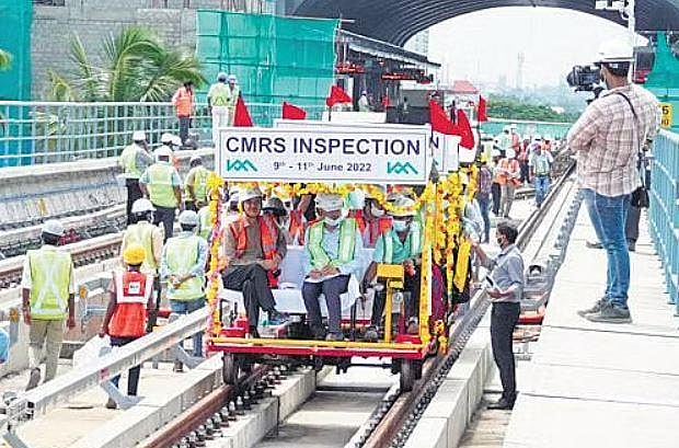 Deputy commissioner Nidheesh Kumar, officers on special duty E Sreenivas and M N Athani, and senior technical inspector N G Presanna were part of the inspection team. Kochi Metro MD Loknath Behera and Director (Systems) D K Sinha welcomed the team at the SN Junction.