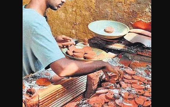 The baking takes two days – first-day clay discs will be placed in the kiln and smoked to eliminate the moisture and the next day these discs are put to direct fire. On the third day, they are taken out of the furnace.