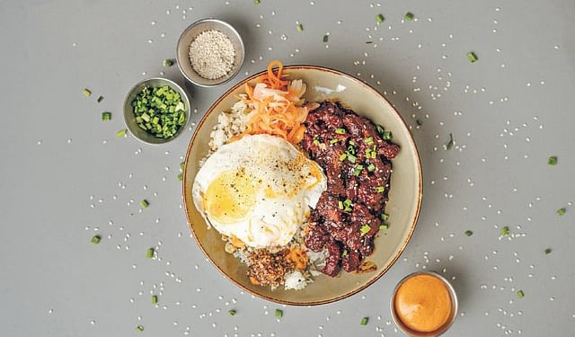 Another fish-based item that comes to the table is a rich-looking prawn roll. Onto the brioche bread, which has bisque mayo and avocado, scallion, and chunky prawns are packed inside. It gives a punch of flavour all at once, biting on the chilli gives adequate heat. With a mix of flavours and colours comes the Korean barbecue pork rice bowl. Steamed bok choy, fried egg, spicy mayo, and chorizo jam — a sweet and spicy condiment — give the kimchi fried rice a bit of sweetness.