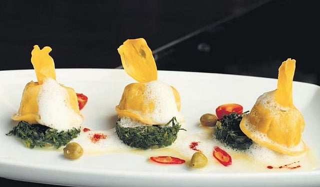 His Jackfruit Ravioli with chilly cardamom foam is the stuff of legends. “But when we experiment, the taste of all the dishes should be balanced. One should not overpower the other. Ravioli is a type of pasta with fillings of meat or cooked vegetables. I stuffed the thin dough with ‘chakka puzhukku’ instead. And instead of sauce, I use a mix of cardamom and chilli froth. It will look like ravioli but the taste is influenced by ‘chakka puzhukku’,” he says.