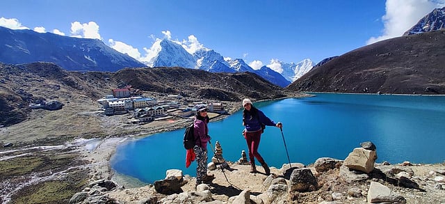 Instead of the conventional route from Lukla to Tengboche, the Bengaluru residents took what the trekkers would call the ‘tough’ trail - from Gokyo through Cho La Pass. The route is known to be difficult as the weather is sensitive and the climb is challenging as one may require ice axes or even crampons on the pass.