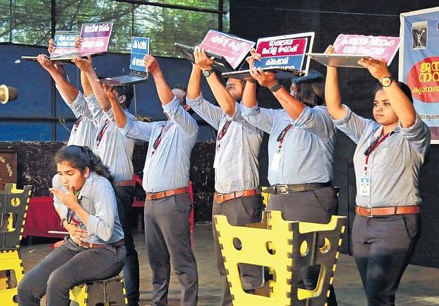 ‘She Archives’ is not just about women. The drama also divulges the much-discussed yet unchanged perspectives about the rights and plights of the LGBTQIA+ community. The rap music between the dialogues adds emotion to the drama and attracts the attention of the audience as well. The play, directed by Arun Lal, is being performed at the Sashtra Sahitya Parishad’s (KSSP) Padayatra across the state.