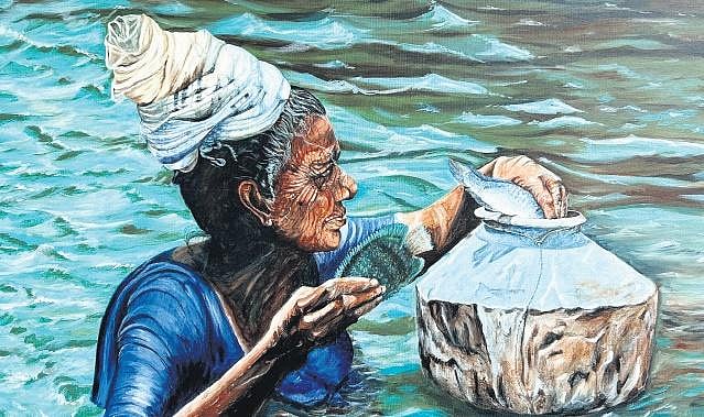 “I got inspired to take up art after reading a book by renowned artist P L Francis. Born in the coastal village of Elamkunnapuzha in Ernakulam, from a very young age, I have been fascinated by fisherfolk and their techniques. I had an innate desire to portray their day-to-day activities. So, as I started painting, I wanted fishermen to be the central theme.”