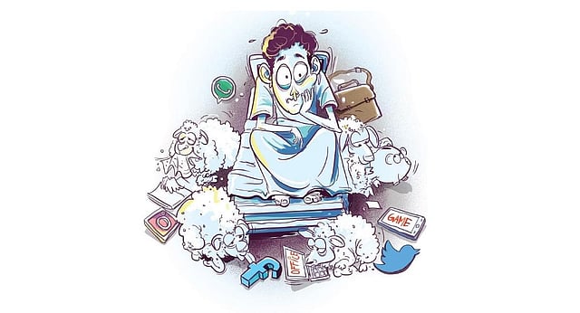 “I stay up late, mostly hooked to my mobile phone,” says Kochi-based content strategist Siddharth K. “Most of my days are drab and dreary. The only leisure time I get is at night, and I look for some disconnection from the mundane work-life cycle. Dozing off into slumber with the mobile phone on my chest has become a habit.”
