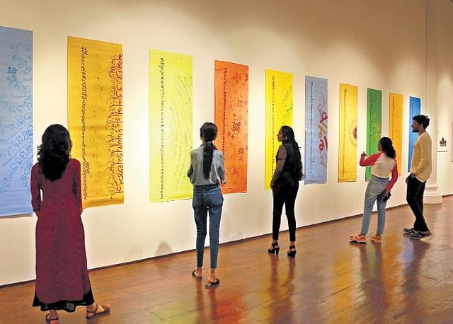 Drawing curious crowds at Durbar Hall Gallery in Kochi, the fest exhibits about 150 works in different languages around the world and features 18 artists, including prominent Indian calligrapher Achyut Palav and international artists such as Hebrew expert Michel D’ Anastasio and Iranian calligrapher Masoud Mohebbi Far, who is also the founder of Honarosta, the first village art gallery in Iran.