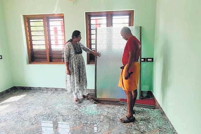 The house was left with shattered doors and windows, and fragments of glass scattered all around. The revenue department officials examined the two-storeyed house. “We completed the construction by availing loans. Some work remains unfinished. Now, we have to halt all work,” Sreenath added.