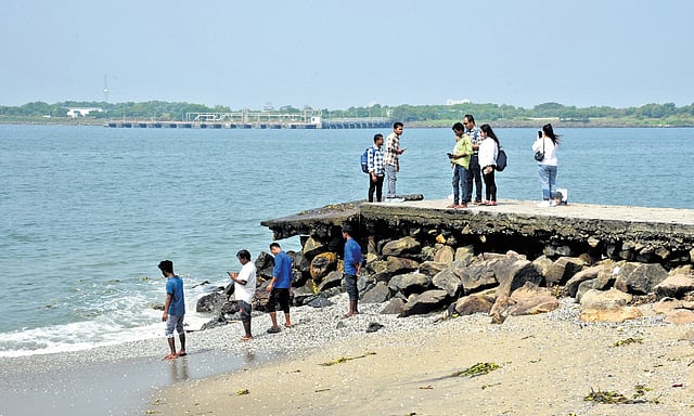 As things stand, life guards posted at the beach are having a tough time warning people. “We are trying our best to prevent the visitors from standing at the tip of the groyne. It can give way any time. There is a constant threat of low tide, especially in the evenings, with water flowing back to the sea. It can spell danger if a person falls at that time. Often, visitors don’t heed our safety guidelines,” a life guard said.