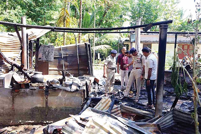 Fire and rescue service personnel extinguished the blaze and recovered the bodies. The house, with walls made of tin sheet walls and its roof interspersed with tarpaulin and asbestos sheets, was gutted in the blaze. According to reports, the couple and their third son, Vijayan, had differences over property. Vijayan, who used to live with his wife and children, moved out of their house six months ago following an altercation.