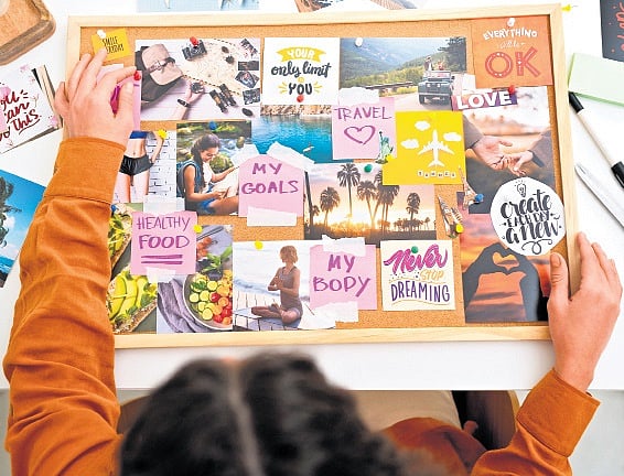 To bring your vision to life, the concept of a vision board comes into play. “Along with words of affirmation, visualising your goal is key. A vision board helps turn that vision into a tangible representation,” adds Dhanya.