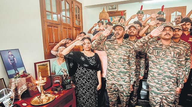 A memento and citation were handed over to the wife, his mother Lakshmi Amma and son Arjun. Regiment Havildar Major Rajeesh K K, ex-servicemen and NCC cadets were present on the occasion.
