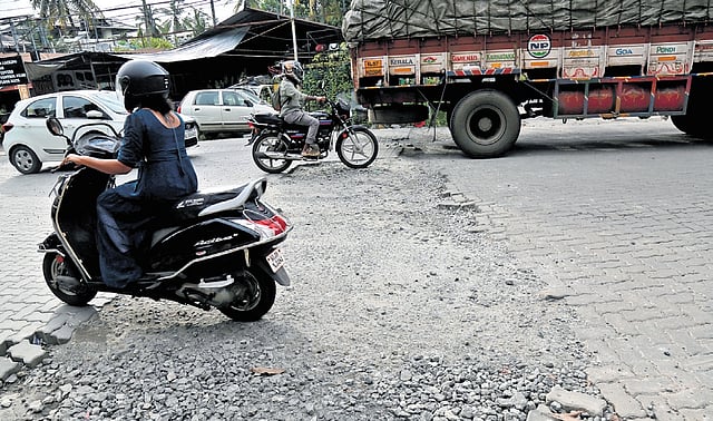 During the peak hours, a serpentine queue of vehicles chokes the two-lane road. Adding to the peril, work is yet to be completed in a 20-metre section near the Nucleus Mall in Maradu, where the asphalt was removed a month ago for tile-laying. The work has been halted. The reason? The National Highways Authority of India (NHAI) had begun laying interlocking tiles from both ends. But the final stage of the work was suspended because of a height difference between the two sides. Blame it on unscientific construction! “The work has remained suspended for a month though raw materials have been brought to the site,” said A B Sabu, a former standing committee chairman of the Kochi corporation.
