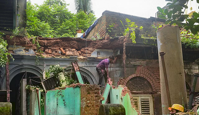 The about 150-year-old building collapsed after a heavy shower, the police said.
