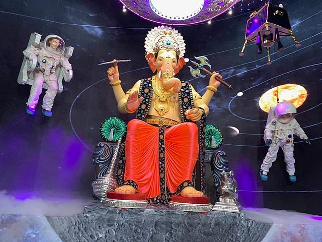 The Parelcha Raja Ganesh mandal at Nare Park too also has a moon-landing theme. "We have a 26-feet tall idol which is shown dancing on the moon. The theme meant to demonstrate the success of Chandrayaan 2. The mission has achieved success in most of its operations despite the fact that we lost contact with the lunar lander," said Milind Gawde, an office-bearer of the mandal.