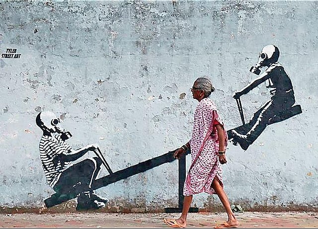 Though Tyler started graffiti work in 2012, it was only in 2019 that he began going political. "Politics and world problems go hand in hand," says the artist, who has also collaborated with other artists in India and abroad.