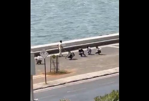 The incident took place on Monday afternoon on the promenade by the sea, where a group of men tried to enter the water, an official said.
