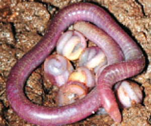 A group of dedicated burrowers, Chikilidae exhibit an intriguing and highly specialised reproductive behaviour. The mother builds underground nests for her eggs, guards her egg-clutch by coiling around them until the embryos hatch in about two to three months. The eggs undergo direct development- they feed on the yolk reserves and come out as miniature adults without an intervening free-swimming larval stage that is generally characteristic of amphibians.