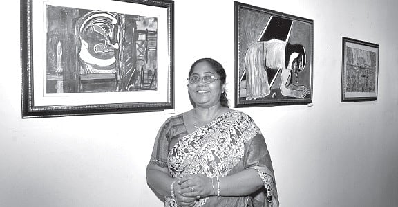 Her works also wafts of nostalgia, which she says depicts the sorrow of a damaged nature - the images of paddy field, a house boat, ‘kottavanchi’ and waterfalls- among other sceneries of places she visited around the globe.