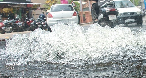 This pipeline carries water to Sasthamangalam, Kowdiar, Hospital Road through Oolampara Junction from Peroorkada tank. The pipe exploded with a big noise and the road also suffered partial damages.