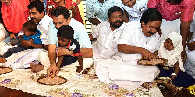 THIRUVANANTHAPURAM: Over a thousand tiny tots were initiated into the world of letters on Vijayadashami day in the state capital. Major temples, spiritual and cultural centres hosted the ‘Vidyarambham’ ceremony in a traditional manner with writers, politicians, artistes and cultural leaders leading the ceremonies.