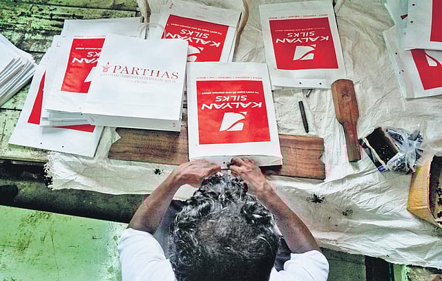 THIRUVANANTHAPURAM: Paper bag making at Poojappura central jail is a scene not to be missed. Jail inmates carefully carrying piles of paper, a few engaged in printing while a few fixing bag handles. The process of paper bag making begins at seven and continues till 11.30 am. According to the jail superintendent,M K Vinod Kumar, the bags made by prisoners are so popular that prominent textiles have been placing orders in bulk. "The process is simple and easy to follow. Prisoners engaged in paper bag making can earn 50 paisa per bag and can make a decent amount per day by creating maximum number of bags. Raw materials is sourced from wholesale stores and the printing too is done from outside," he said.