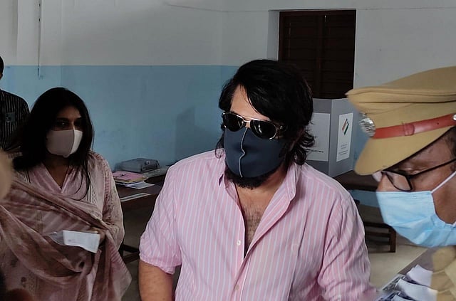 Many celebrities in the capital city turned up on Tuesday to exercise their franchise at various polling booths. Owing to Covid-19 regulations, many of them arrived early. Actor Jagadish and daughter Dr Soumya cast their votes at Kalady Government High School. National award-winning actor Indrans and his family made it to Kumarapuram UP School.