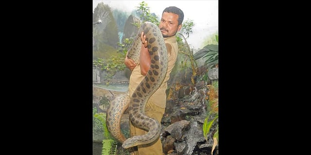 The Wildlife Protection Act of 1972, which has been implemented strictly since the mid '90s, sounded the death knell for Harshad’s family business. His association with animals and snakes led him to apply for a keeper job at the city Zoo in 2002. After two years, the then Zoo authorities entrusted him to take care of the deadly reptiles which he has dutifully been discharging, including taking care of the seven green anacondas.