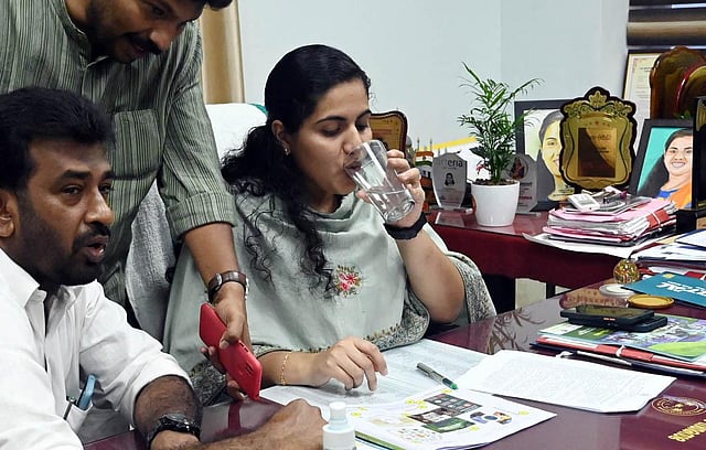 Ever since the letter allegedly written by Rajendran was released in public domain, both the BJP and Congress have been demanding her resignation and their councillors and party workers also staged protests at the Corporation office.