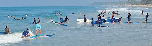 From professionals to novices, one can see surfers carrying their boards to the sea at dawn. Instructors, mostly from Mahabalipuram, say the 5km stretch from Papanasam to Edava has the perfect setting to be a surfing hotspot.