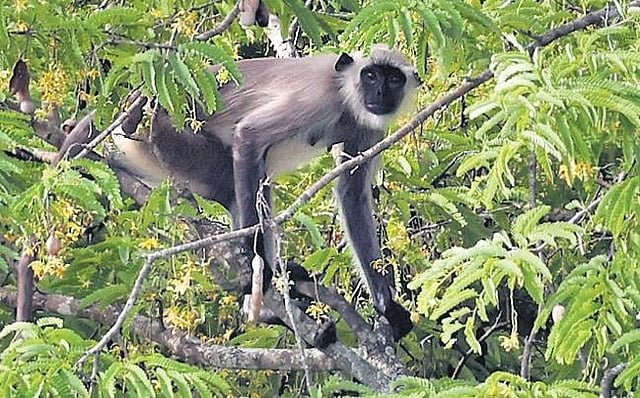 Since Friday evening, the monkey has been cocooned atop the banyan tree where it was found eating its red fruit. U R Udayalal, one of the zookeepers who have been keeping a tab on the gray langur, told TNIE that they have given a tender coconut which was lifted up after it was tied to a rope.