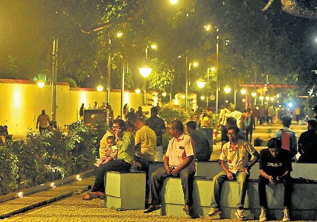 THIRUVANANTHAPURAM: Once the day draws to an end and the sun sets, Manaveeyam Veedhi — the iconic art and cultural space where Kerala will launch its first nightlife project — comes alive with captivating music, street performances, and people vibing and having a jolly good time. Live events and performances by youngsters make the evenings in the capital more interesting than ever. Though the official launch of the ‘nightlife’ project is yet to happen, scores of people irrespective of age group hang out in the one-and-only cultural corridor in the state.
