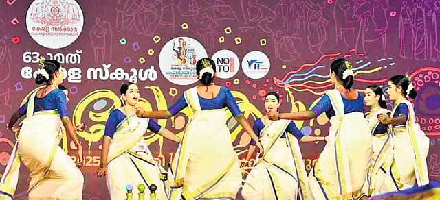 THIRUVANANTHAPURAM: As the third day of the State School Arts Festival concluded, the excitement continued to fill the festival venue. Dressed in traditional Kerala kasavu saree, paired with minimal makeup and traditional jewellery, 18 teams of 10 members each competed in the high school category at the Central Stadium. While the earlier days saw a subdued audience, the venue came alive with the Thiruvathira competition held in front of a packed crowd. Of the 18 teams, 16 secured A grades.