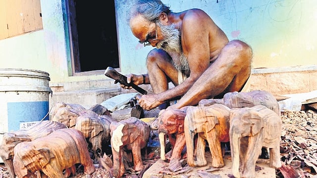 For generations, hundreds of families here have earned their livelihood by crafting elephant sculptures from Indian rosewood (eetti in local parlance). Over time, though many moved on to other occupations, the tradition has sustained.