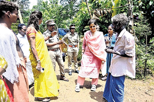 District Collector Anu Kumari visited the Podiyakkala tribal hamlet in Vithura grama panchayat on Sunday. The collector interacted with the residents to evaluate their living conditions and address their concerns.