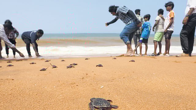 Fishermen and conservationists took extensive measures to ensure the safety of the eggs during the incubation period. On Wednesday morning, the hatchlings were released to the sea by fishermen and forest officials.