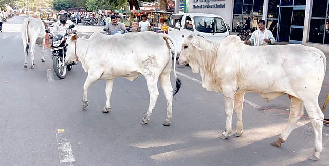 Animal activists in the city alleged that cattle owners often let out their livestock on roads allowing it to feed from garbage bins and litters to save money spent on cattle feed. Accidents often happen as the stray animals feed on vegetation on the medians. Few months ago, two youth escaped with minor injuries in a road accident near Saradha College Junction on BRTS Road. The animal activists demand constitution of committee comprising officials from the civic body, police, animal husbandry and fire services to device a mechanism to keep both the cattle and motorists safe on roads.