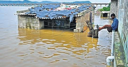 On Monday, the irrigation department lifted all the 70 gates. Inflow to Prakasam Barrage is 1.45 lakh cusecs and outflow is 1.30 lakh cusecs. While some people refused to move out of their houses, some more complained about the lack of response from the officials in supplying food, medicines etc to them.