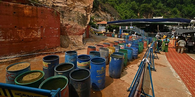 VIJAYAWADA: A day after the boulders rolled down Indrakeeladri creating panic among the devotees during the Dasara festivities, the authorities of Kanaka Durga temple on Thursday placed water tubs adjacent to the place where the landslide occurred. However, the temple officials drew flak for this move.