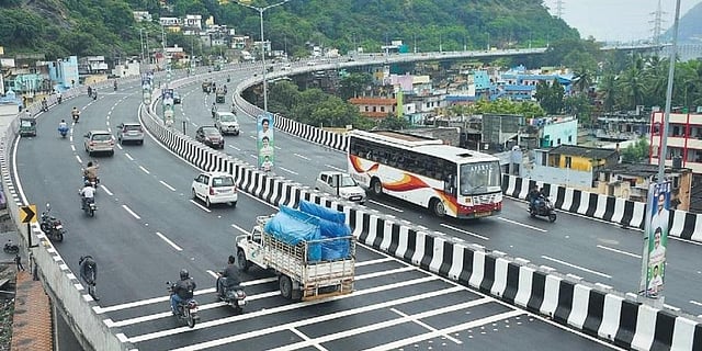 VIJAYAWADA: The newly-inaugurated Kanaka Durga Flyover, which connects Bhavanipuram and Krishna Lanka near Pundit Nehru Bus Station (PNBS), is yet to get CCTV cameras to rein in speed demons and road rule violators. On October 16, Chief Minister YS Jagan Mohan Reddy, along with Union Minister of Road Transport and Highways Nitin Gadkari, inaugurated the flyover via video conference. The Kanaka Durga flyover, a six-lane highway with a length of 2.6 kilometers, is the third of its kind in the country built by using pre-stressed/span and wing technology. The flyover has a unique and complex design with a six-lane corridor supported by a single pillar.