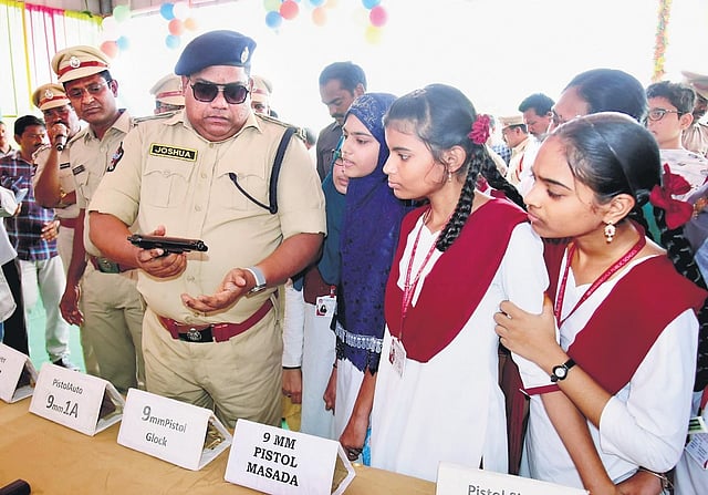 Krishna district superintendent of police (SP) Palle Joshua interacted with the children, and explained them about various arms like AK-47 machine guns, pistols, grenades, wireless sets, metal detectors, manpacks, body-worn cameras, displayed during the programme.