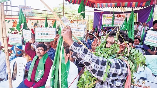 He urged Chief Minister N ara Chandrababu Naidu to honour his Integrated Tribal Development Agency promise and called on tribal MLAs to raise the issue in the Assembly. CPML New Democracy leaders Vankala Madhav Rao, K Kalyan Krishna, and several tribal women joined the protest.