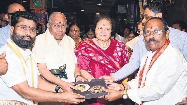 Expert artisans combined age-old techniques with contemporary innovation to create ornaments of divine beauty and spiritual significance. Directors T Shanta Kumar and Suraj Shantakumar handed over the ornaments to Temple Chairman Borra Radha Krishna and Executive Officer Seena Naik.