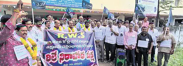 VIJAYAWADA: Demanding release of pending arrears, Navyandhra RWS Contractors Association observed a Relay Hunger Strike in Vijayawada on Wednesday.