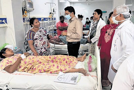 NTR Collector G Lakshmisha, Vijayawada Municipal Corporation (VMC) Commissioner Dhyana Chandra HM, and other health officials visited the New Government Hospital, where the patients are receiving treatment.