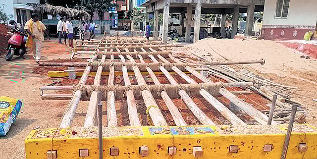 However, owing to the scarcity of bamboo, some organisers have turned to eucalyptus trees brought from the Nandigama and Jaggayyapet regions. While bamboo costs nearly `50,000 including transportation, eucalyptus is relatively economical, costing between `25,000 and `30,000.