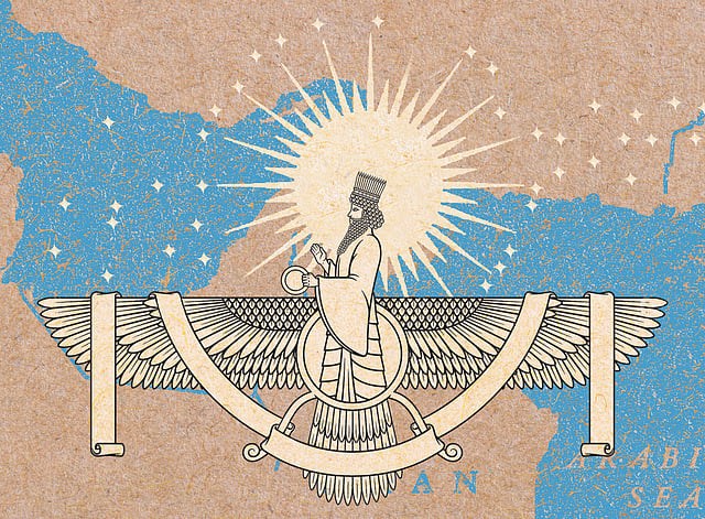 Coins issued by Sasanian rulers show the crowned bust of the king on one side and the sacred fire altar on the other. By placing the fire altar on currency used throughout the empire, the rulers constantly reminded people that the state and religion were inseparable. When the empire finally collapsed in 651 AD during the Arab conquests, the fire-altar coins disappeared, and were replaced by coins with the Arabic script. A few who clung to the old ways found refuge near the Gujarat coast, and became part of India as ‘sugar in milk’. These were the Parsis and the more recent migrants, the Iranis.