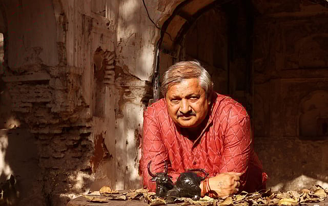 As Kumar articulates, “The exhibition ‘Atmanaveshana,’ which translates to 'Self-Inquiry’, is a deeply personal and spiritual journey expressed through sculpture and painting. The theme revolves around introspection, the essence of life, and the silent stories told through form and texture. “Through my sculptures and Dr Amrit Kapoor’s paintings, we invite the audience to look inward—to connect with the rhythm of nature, the symbolism of the spiritual world, and the power of timeless artistic traditions.”