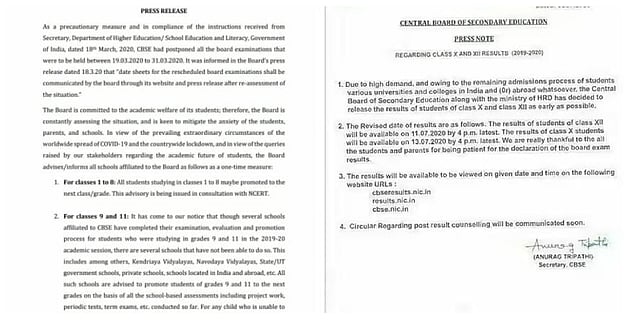 The fake circular also announced that the dates of results for Classes 12 and 10 exams will be 11 and 13 July respectively. However, the results are tentatively expected on July 15.