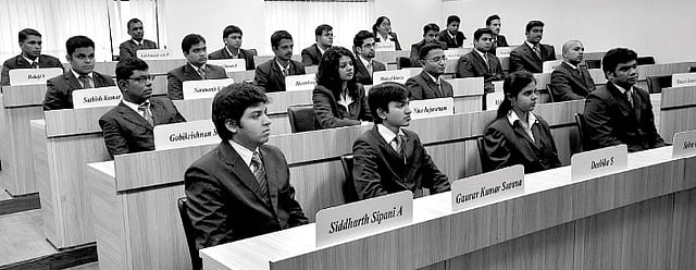 Located on the IT highway, SMOT’s infrastructure is designed to support better interaction with faculty and ease work on projects and seminars — with a board room, video conferencing room, visitor’s room, discussion room, huddle spaces for students to have discussions in groups. Wi-Fi enabled, students can take their work to the library (which has 2,000 books and subscription to 25 journals) or classrooms or have a discussion on the terrace with their professors, who, as is appropriate, treat them